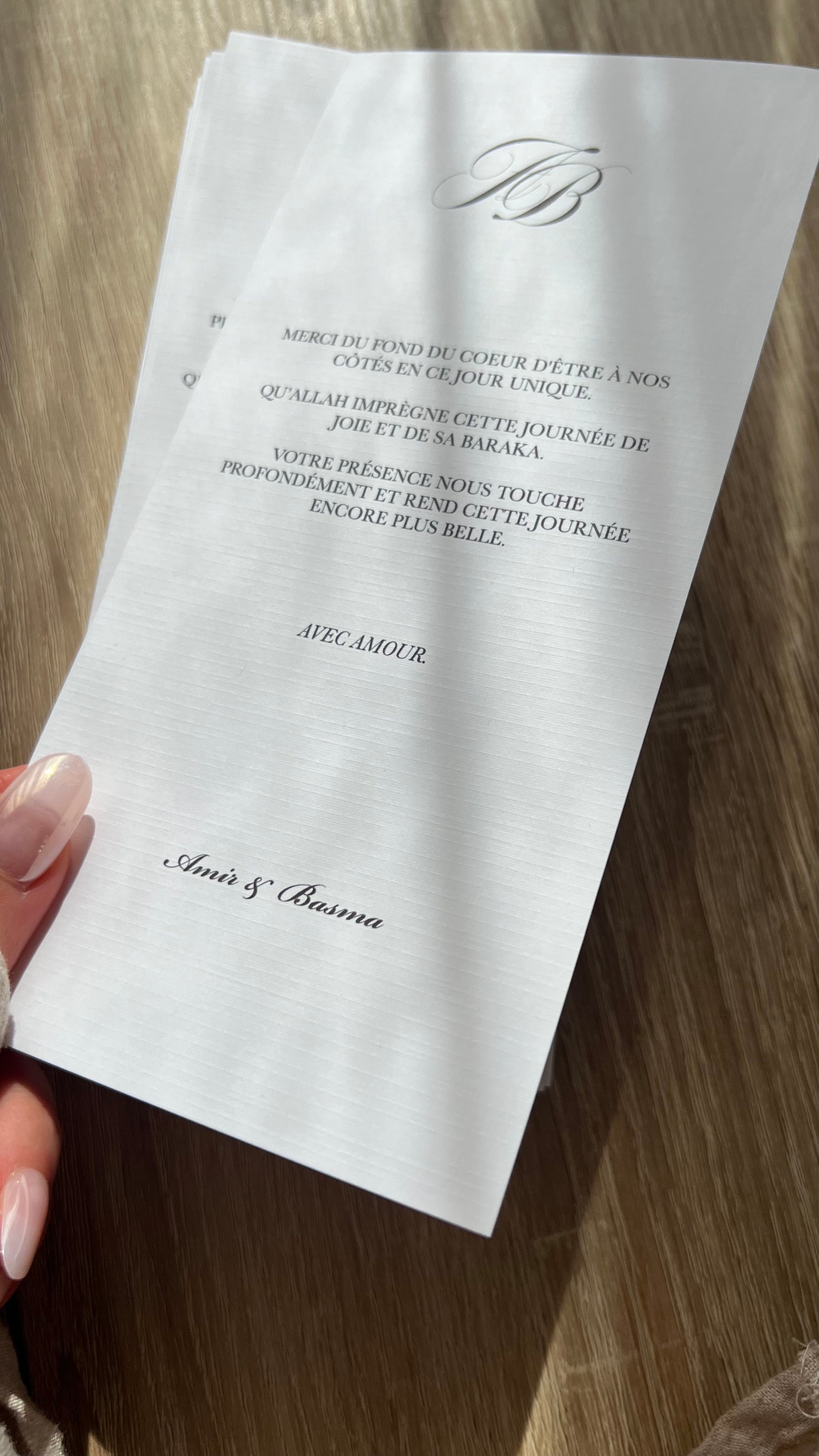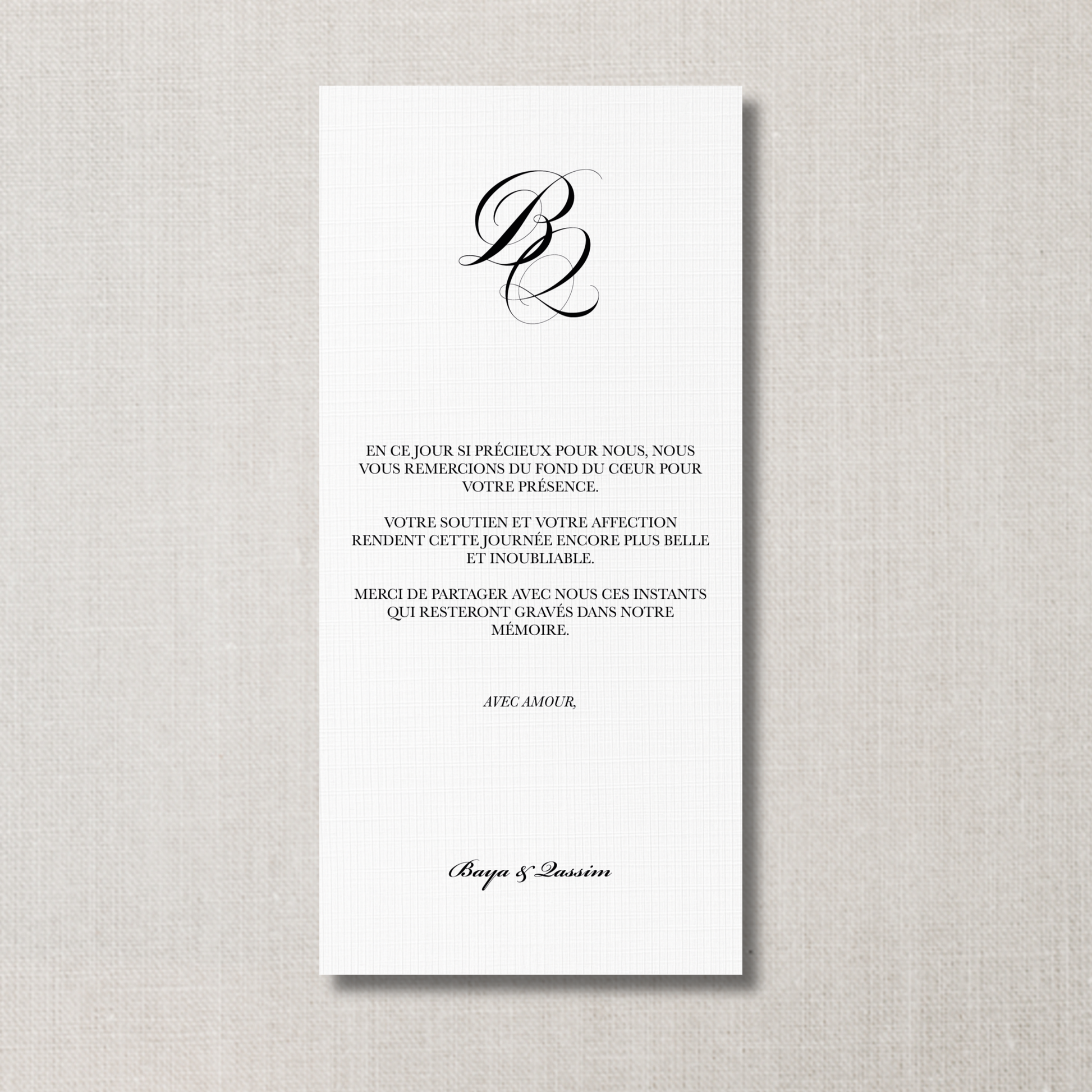 Des cartes de remerciements qui s’associent parfaitement à vos faire-part, menus, et certificat de mariage