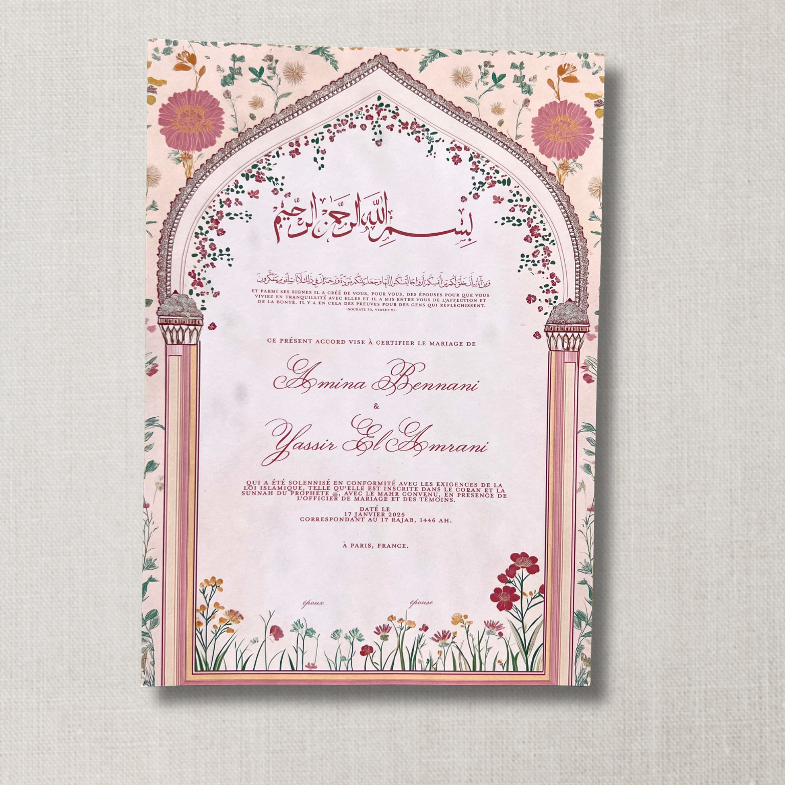 Offrez à votre union un certificat unique, prêt à être encadré et conservé comme une pièce de votre patrimoine familial.