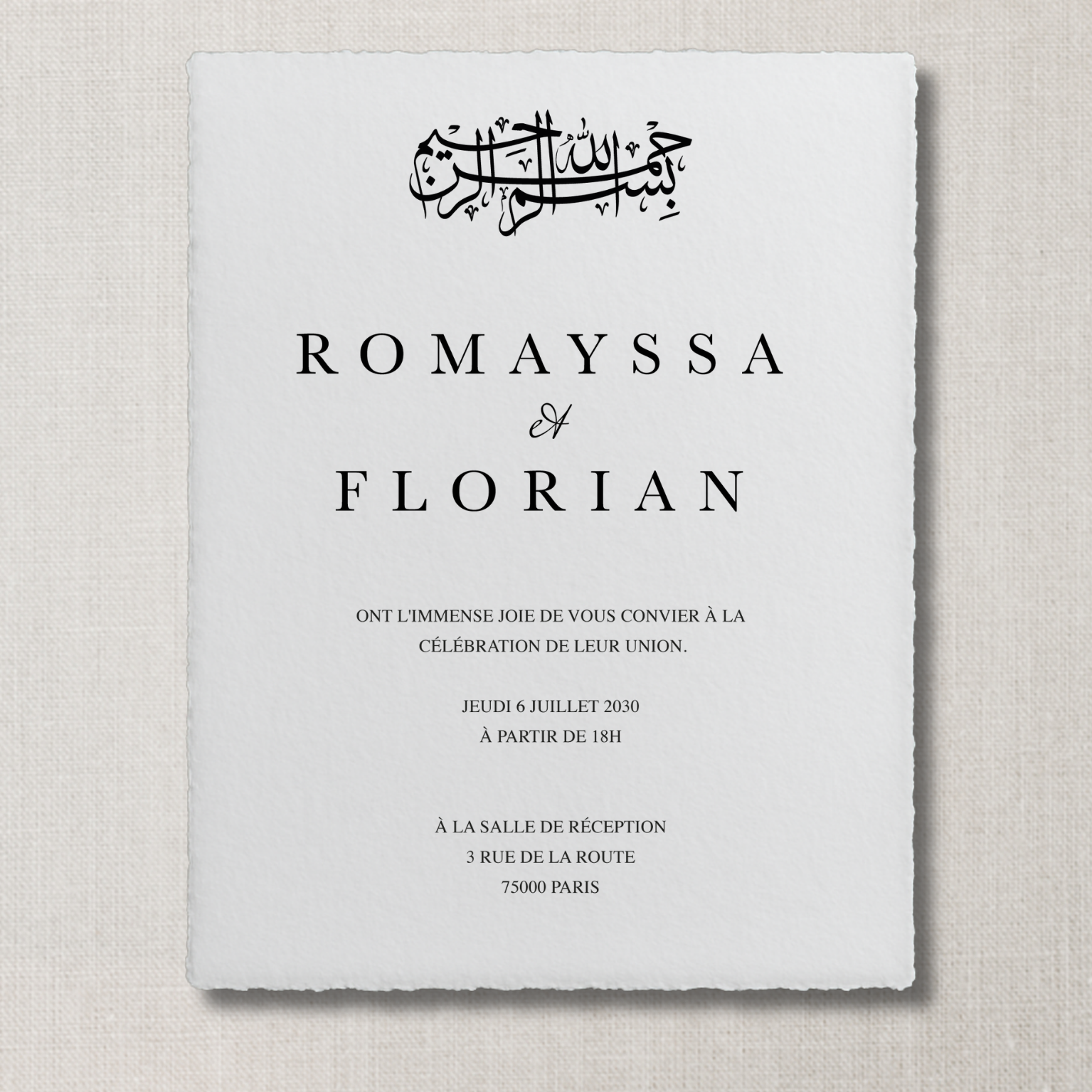 Le design présenté est fixe : seule la personnalisation du texte est incluse.Pour toute demande sur-mesure (modification de la mise en page, typographie, couleurs, etc.), merci de nous contacter directement via WhatsApp : +33626550575