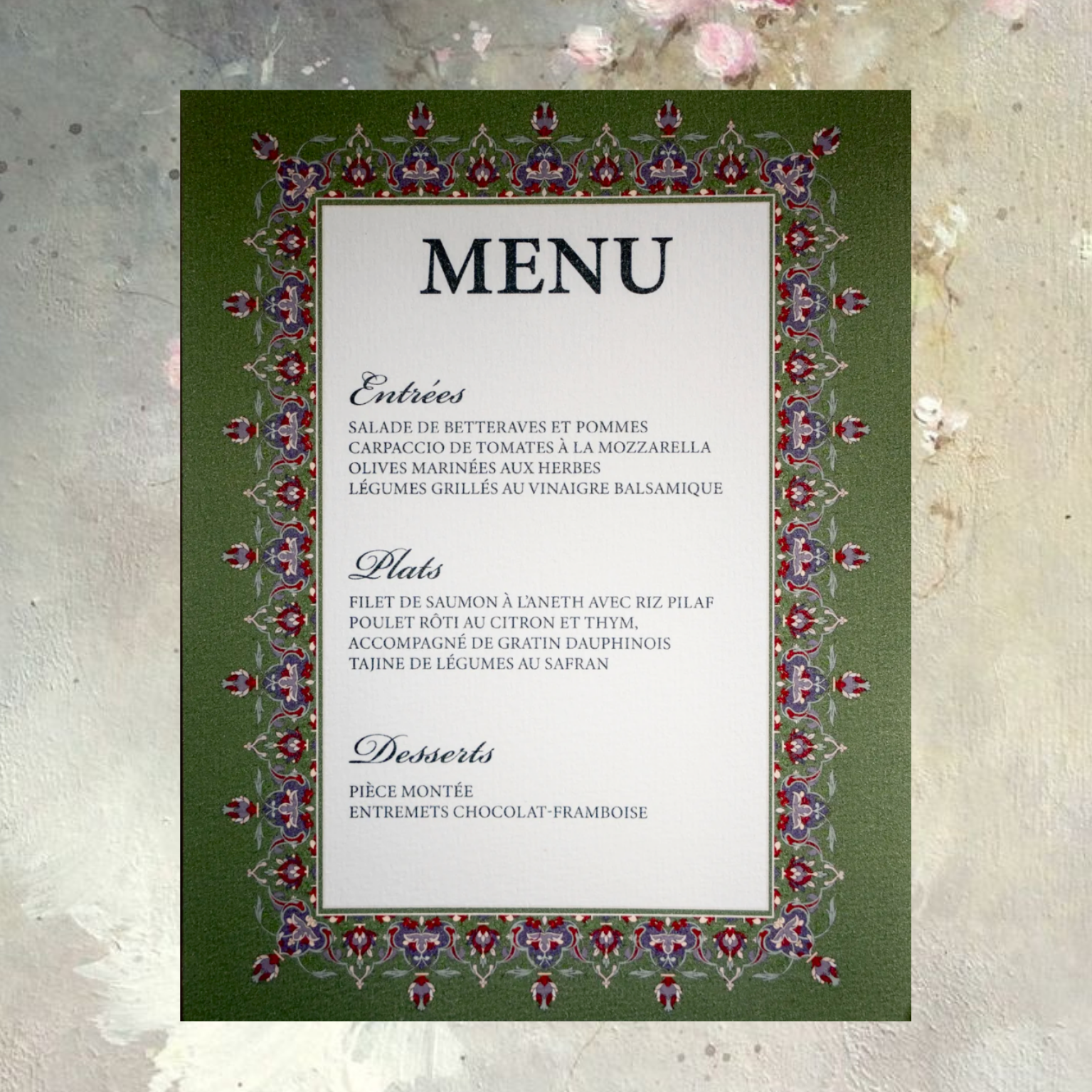 Des menus qui s’associent parfaitement à vos cartes de remerciements, faire-part et certificat de mariage